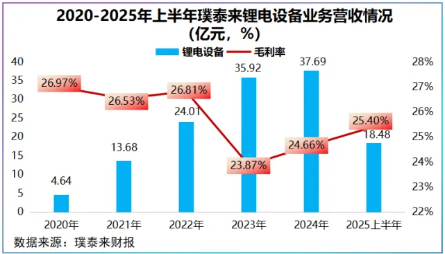 2020年,公司锂电设备营收不到5亿元,到了2024年则迅速增长到了37.69亿元,年均复合增速近70%。