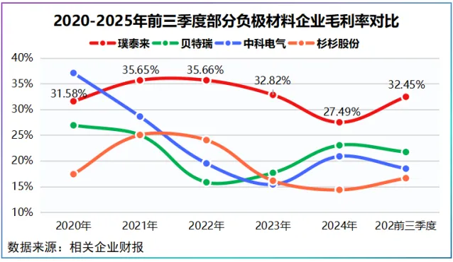 2020-2024年,璞泰来毛利率整体在30%左右,即便2024年材料价格承压,其净利润率仍维持在10%以上,盈利韧性明显优于单一锂电材料供应商。