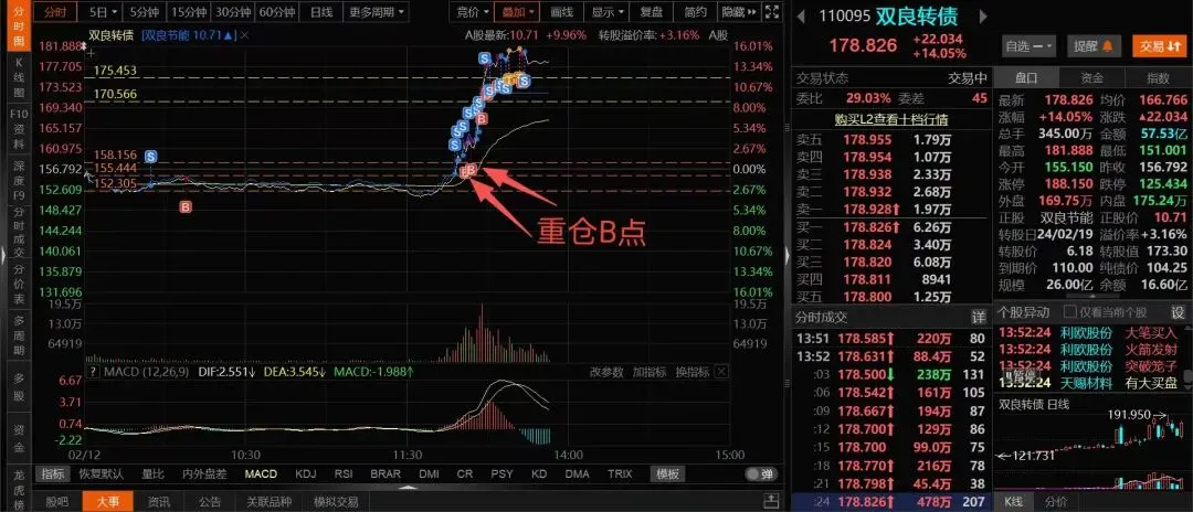 2月12日倒数第2个交易日实盘记录:双良转债的N形反包打法