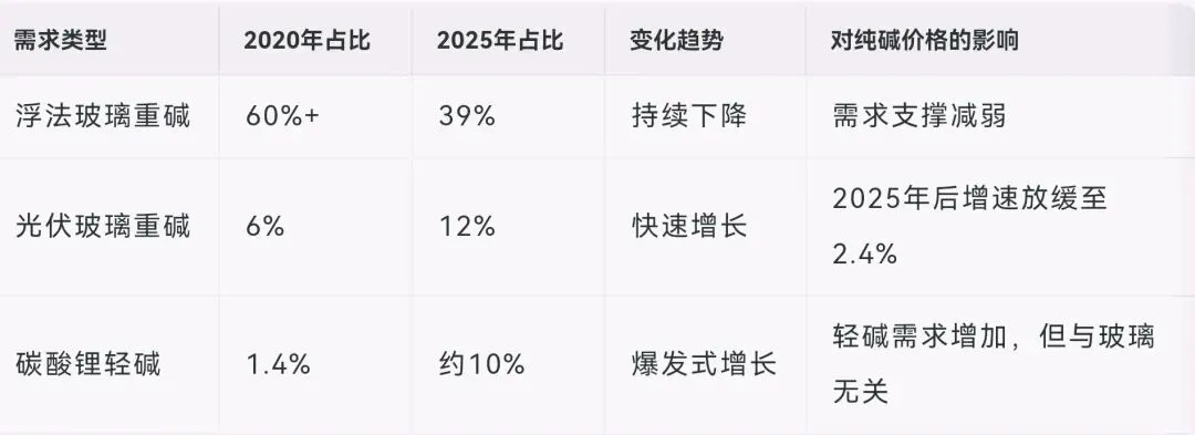 纯碱需求结构已发生根本性变化,削弱了与玻璃价格的联动性。