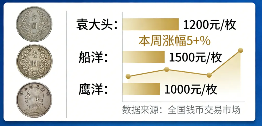 - 品相影响:普通通货与评级高分币 (PCGS/NGC MS60+) 价格差距可达 10 倍以上,如袁大头普通版 1000 元左右,而 MS65 分可达 10000 元 +