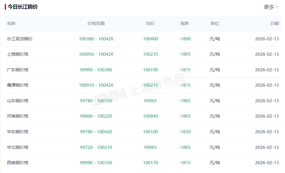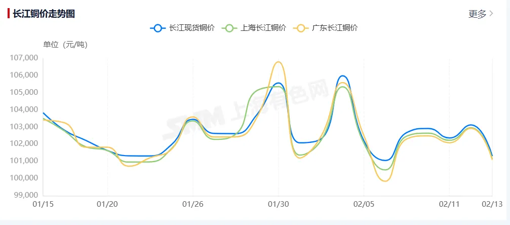 今日铜价多少钱一斤最新行情,长江铜价今日铜价走势图(2026年2月21日)