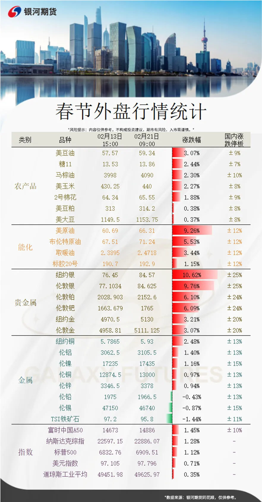 本报告由银河期货有限公司(以下简称银河期货,投资咨询业务许可证号30220000)向其机构或个人客户(以下简称客户)提供,无意针对或打算违反任何地区、国家、城市或其它法律管辖区域内的法律法规。除非另有说明,所有本报告的版权属于银河期货。未经银河期货事先书面授权许可,任何机构或个人不得更改或以任何方式发送、传播或复印本报告。