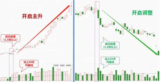 举例来说,某只股票在长期横盘整理阶段,成交量始终维持在低位水平,若某一交易日成交量突然达到前期的1.5倍甚至2倍以上,且股价对应的成交量成功站上50天均量线,这一信号大概率预示着股价即将迎来启动行情。