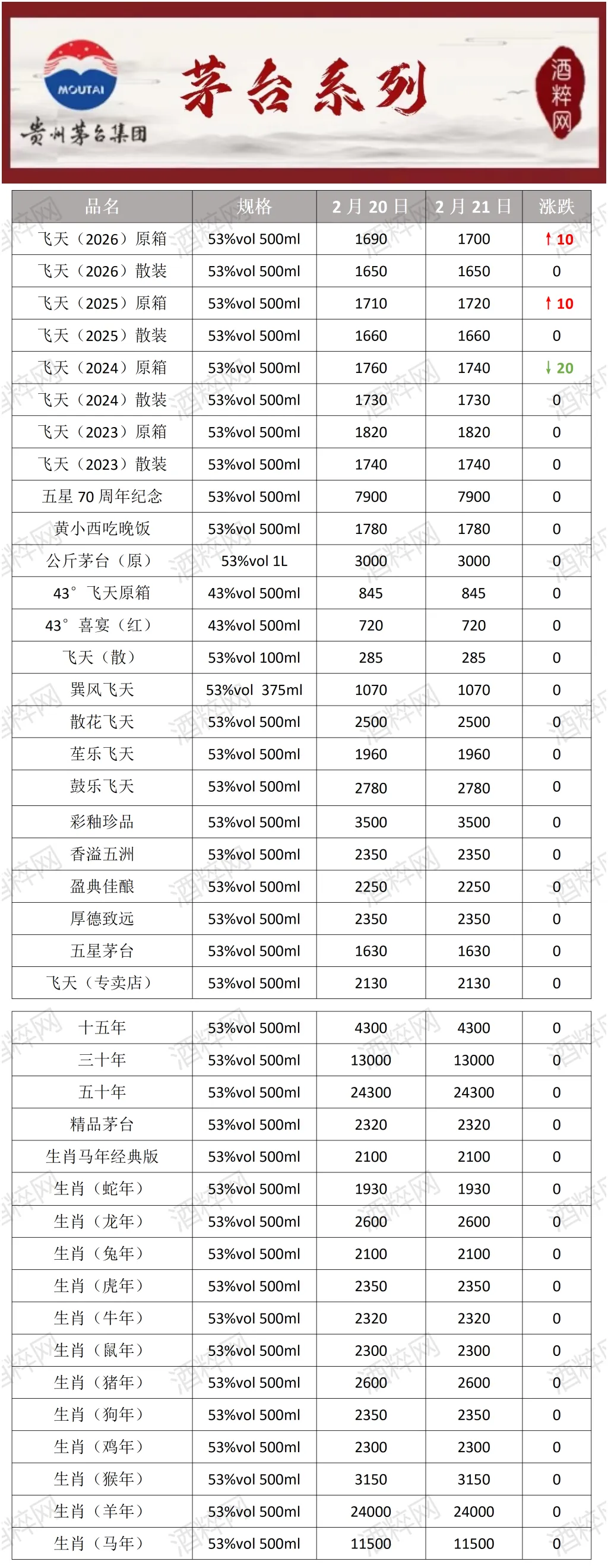 当前位置:首页>行情>酒粹•日价|2月21日全国名优酒价格行情