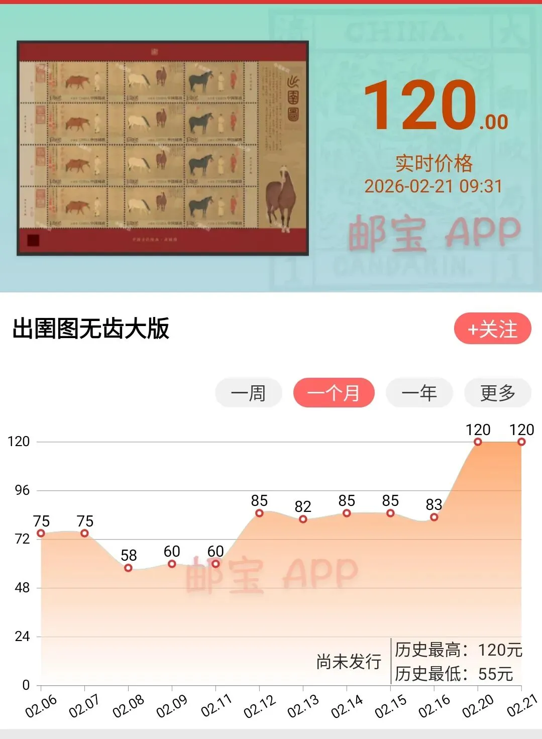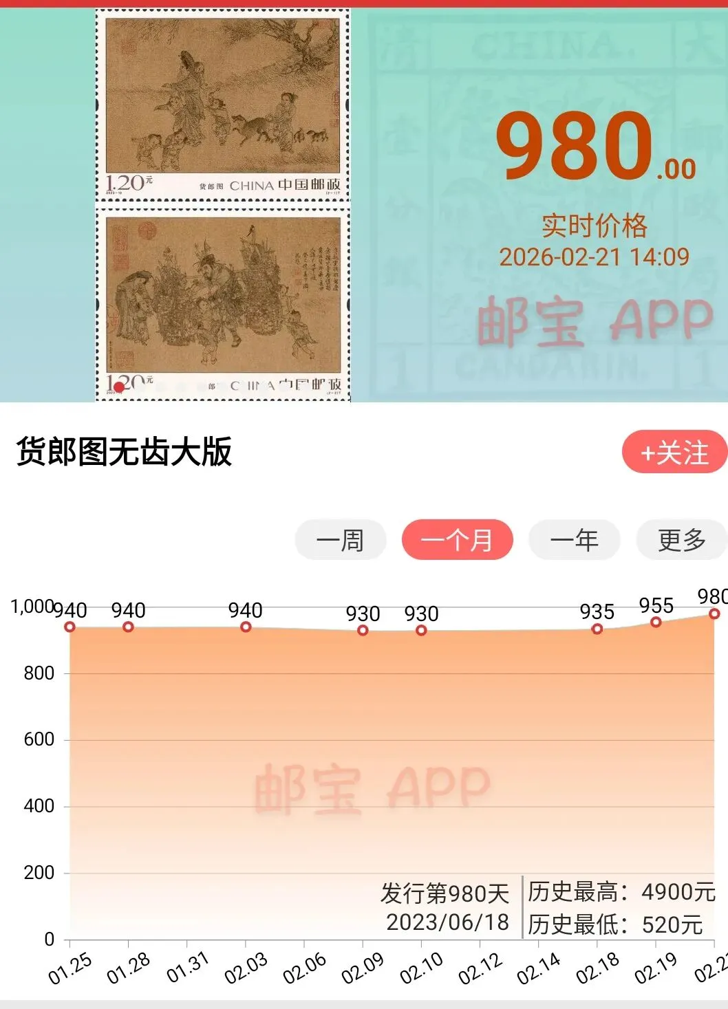 当然能不能跟《货郎》无齿大版邮票市场行情持平,我个人认为也是比较的困难,现阶段来看,主要还是看后期的发行量,如果发行量非常少,还有一定的上涨空间。