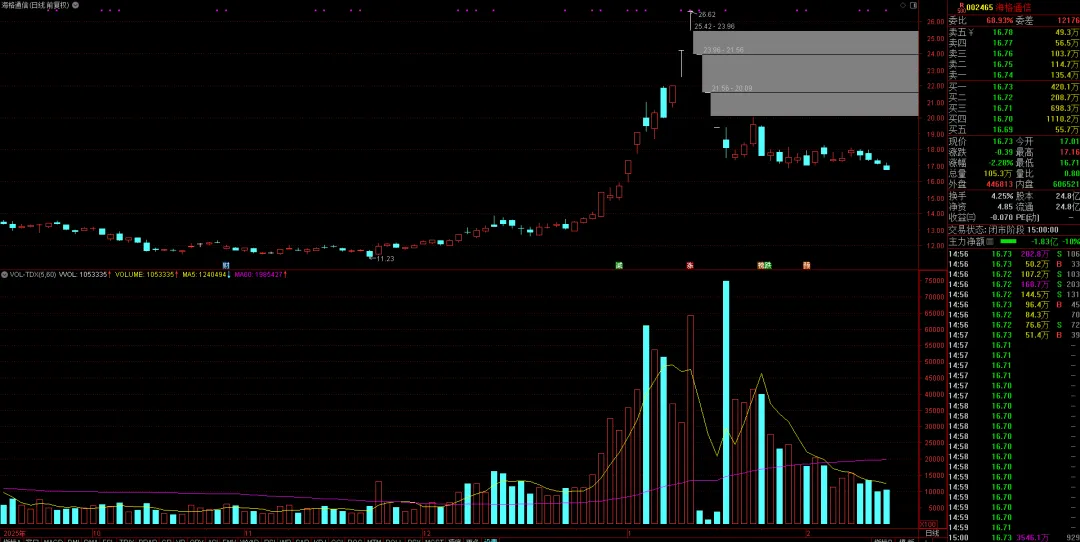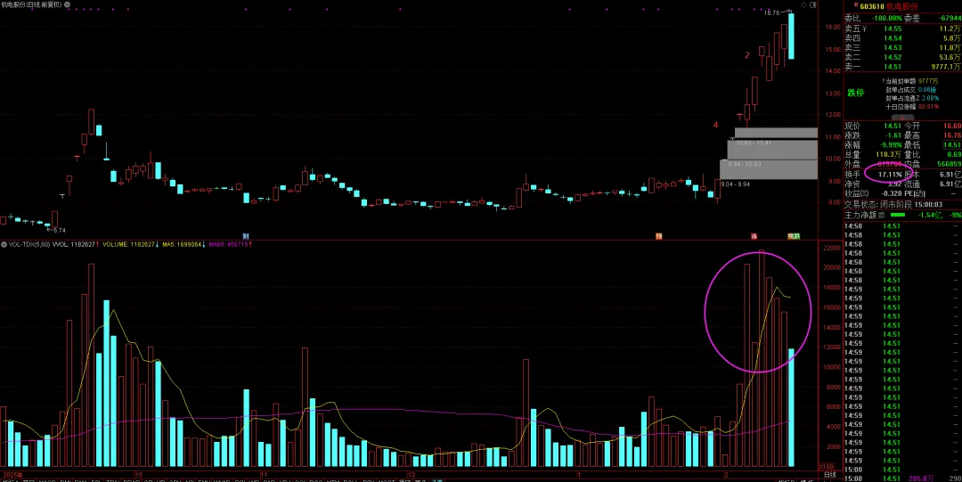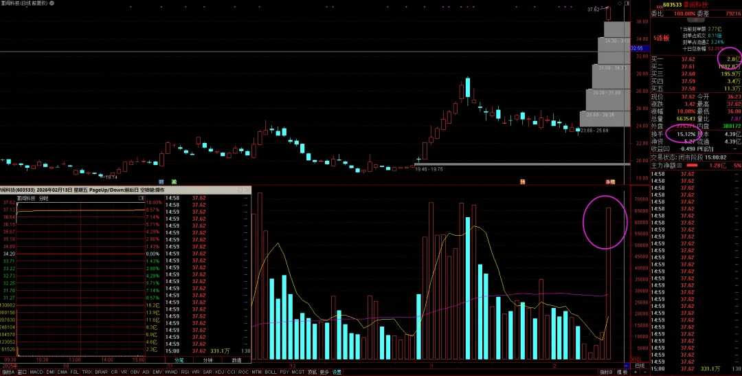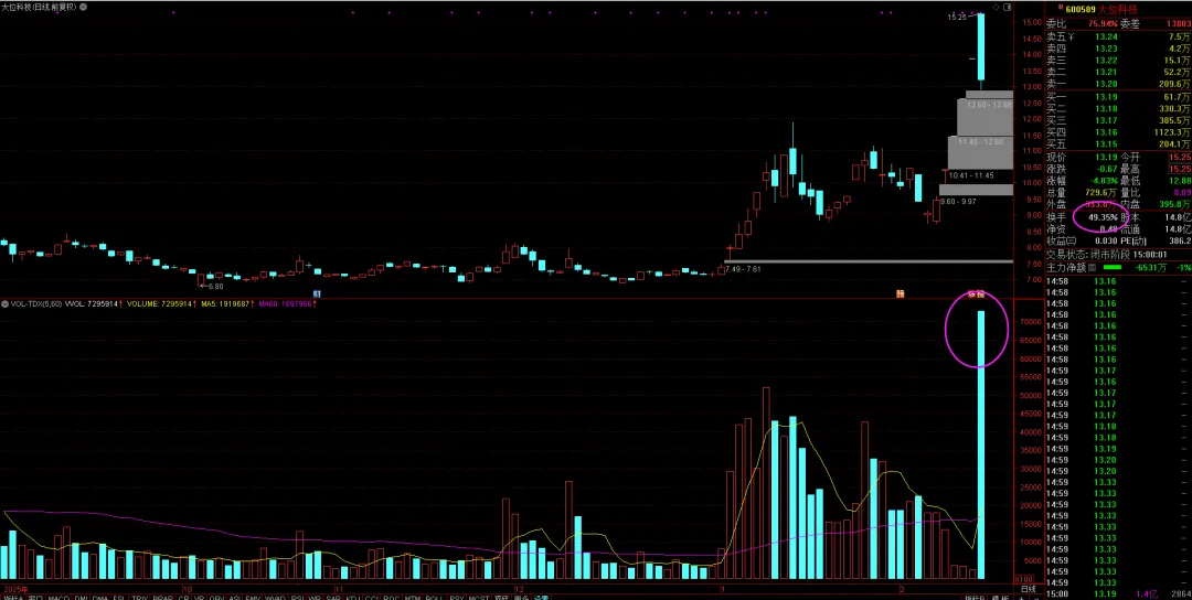 当前市场的最高连板股,5连板,参考上面的分析,周五放出巨量结束一字板行情就很好理解了吧?