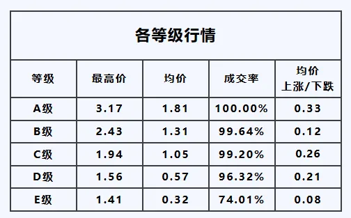A级——最高价3.17元/枝,均价较昨日,上涨0.33元/枝;