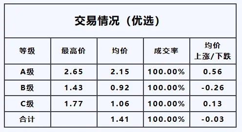 C级——最高价1.94元/枝,均价较昨日,上涨0.26元/枝。