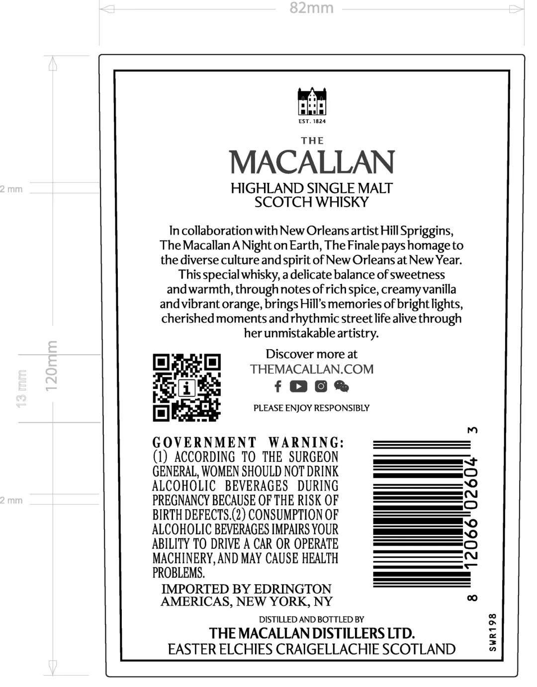 麦卡伦焕新系列终章(A Night On Earth:The Finale) 已在美国 TTB 公示,系列旅程在新奥尔良收官。这款酒 43% 酒精度,与当地艺术家希尔・斯普里金斯合作,致敬新年与多元文化。
