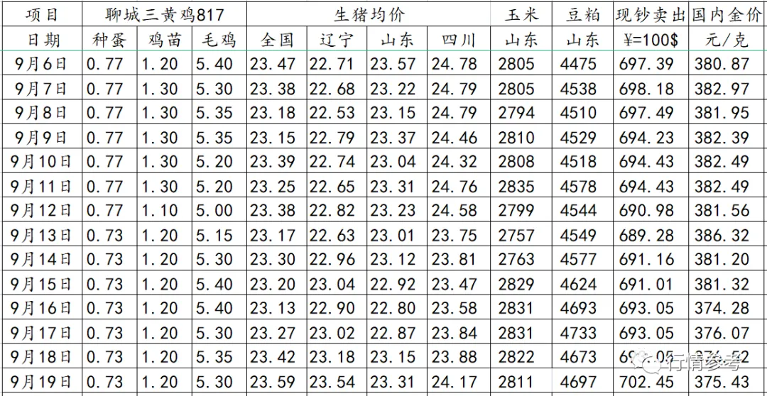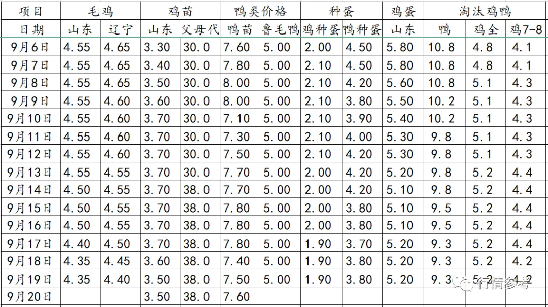 1、肉鸡数据:今日毛鸡山东报4.35元/斤;辽宁报4.4元/斤;鸡苗报价2.6-3.5元/羽;种蛋报1.8-1.9元/枚;当期保底合同投放成本4.32-4.38元/斤,保值投放4.47-4.54元/斤;近日屠宰保本价4.53-4.61元/斤,社会鸡屠宰厂处于盈利状态。当期出栏毛鸡养殖成本4.47-4.56元/斤,市场鸡养殖亏损约0.71-0.82元/羽。