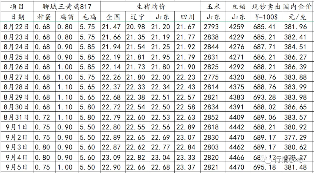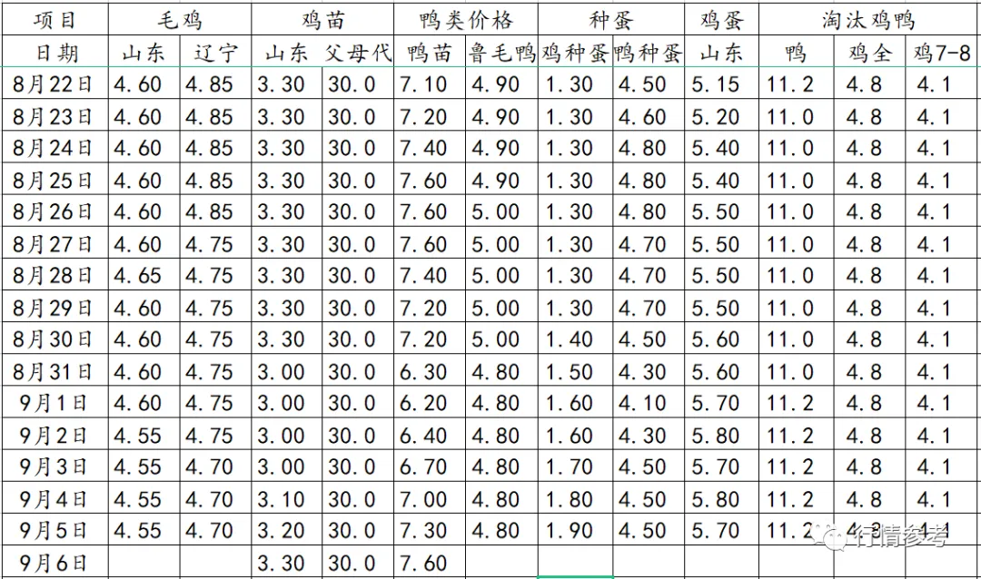 1、肉鸡数据:今日毛鸡山东报4.55元/斤;辽宁报4.7元/斤;鸡苗报价1.7-3.3元/羽;种蛋报1.8-1.9元/枚;当期保底合同投放成本4.25-4.28元/斤,保值投放4.47-4.56元/斤;近日屠宰保本价4.62-4.69元/斤,社会鸡屠宰厂处于微利状态。当期出栏毛鸡养殖成本4.33-4.42元/斤,市场鸡养殖盈利约0.88-0.98元/羽。