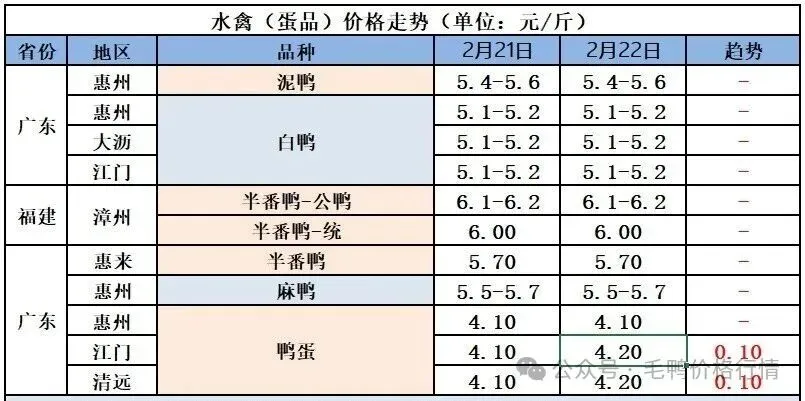 2026年2月23日全国鲜鸭蛋价格