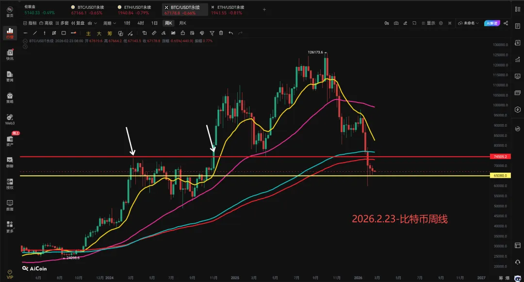 不能做空,可以做多吗?多单也是不能做的,全面看空,做多就是逆势单,比特币跌到60000的位置可以考虑做多,或者突破70000不跌破,也可以考虑做多,具体的还要看那时候的形态,也就是要么跌到重要支撑位或者突破重要阻力位,其他的位置都不怎么好,还是要多注意风险。