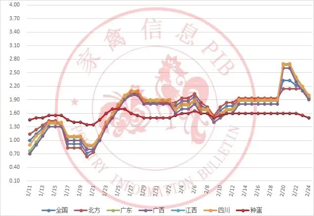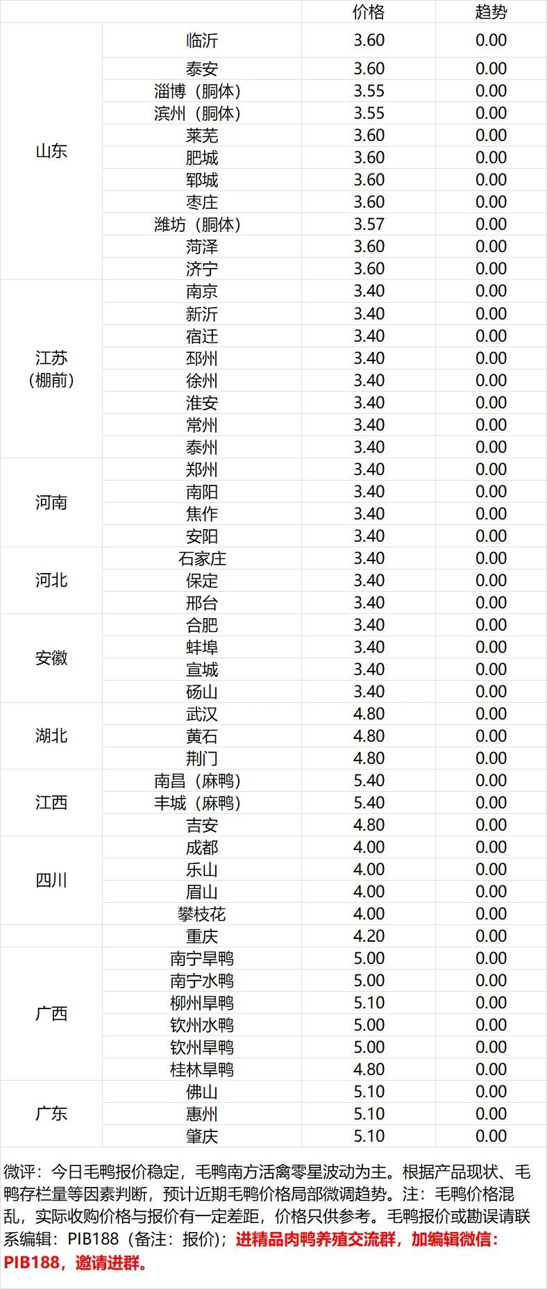 【麻鸭】广东2.7,广西2.6,江西2.6,