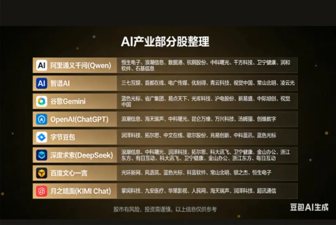 算力这边,豆包同样大放异彩,香港那边的智谱被外资看好,股价上了新高度。A市这边个人整理了一下,具体大家看图吧。