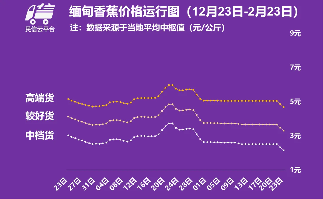 缅甸口岸 昨日大体下跌 中枢值下行0.17元/公斤