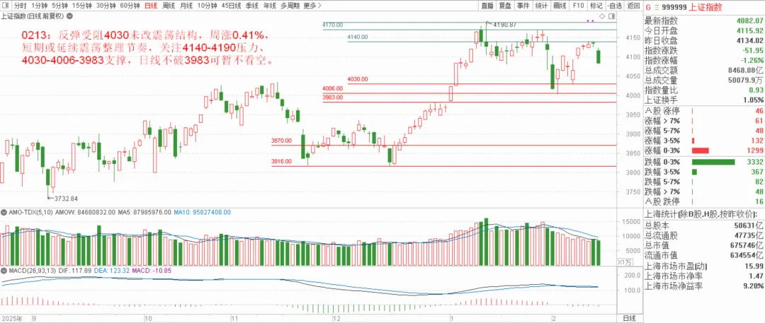 复盘验证:节前反弹受阻4030,最终未改短期震荡结构,周线涨0.41%并留下长上影,短期或延续震荡整理的节奏。