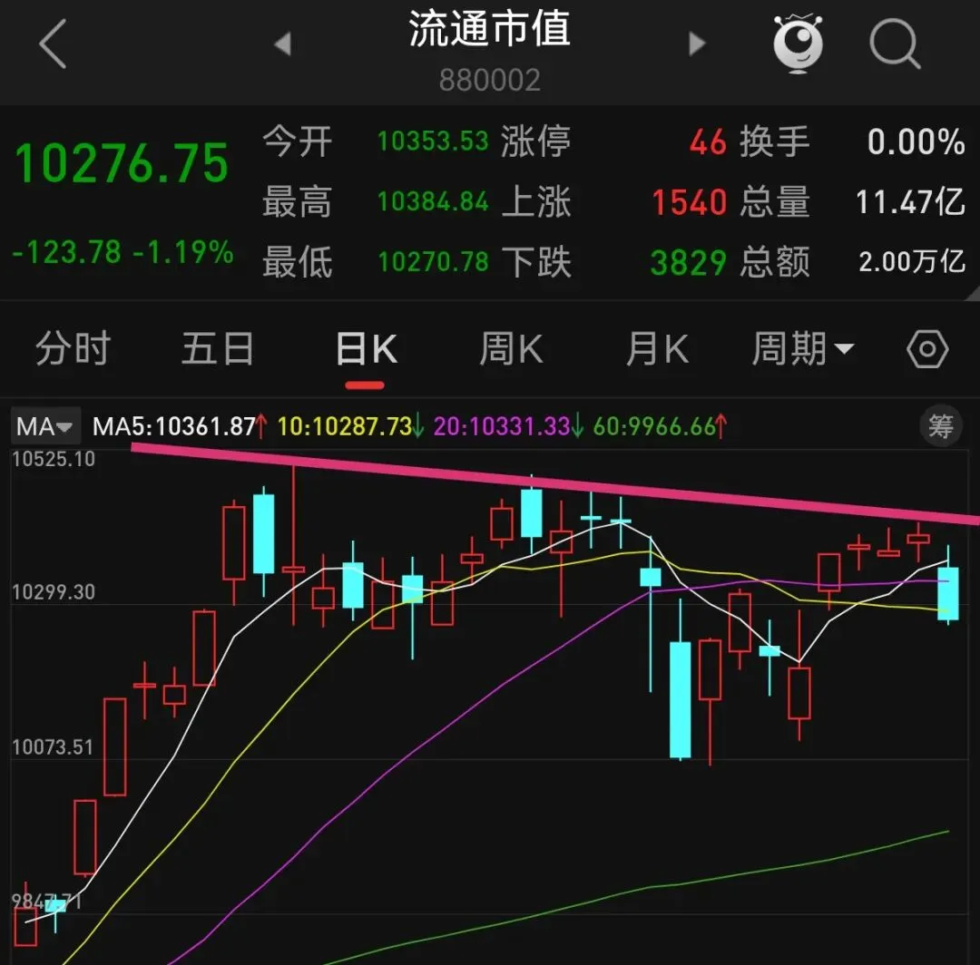 3,流通市值上一个交易日是阴包阳,跌破了多条均线,k线形态奇丑无比,通常这种走势,(排除消息面)冠军视为调整的开始,所以奉劝大家,仓位不能太重,防止高位深套,稳健的朋友建议做右侧交易,也就是突破上方压力才能逐步上仓位!
