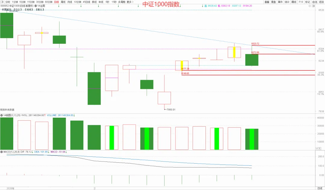 两市合计成交19827亿元,低于2万亿,虽然VOL指标还不是百日低量,但交易额已是今年以来的地量水平,且相比一月中旬近4万亿的量能已经缩量了50%。通常每年春节长假前市场都会缩量,节后资金逐渐回流,逐渐放量,或多或少会助推开启一波春季行情。对于大盘来说,上方是一个很厚的筹码密集区,阻力较强,从量价关系的角度来看,春季行情未必会有太大的空间,但只要市场能保持2~2.5万亿的量能水平,市场大概率还是此起彼伏的跷跷板行情,不同宽基指数、不同行业板块轮动表现。