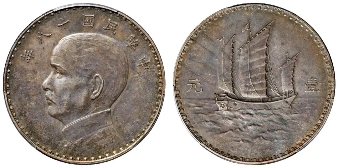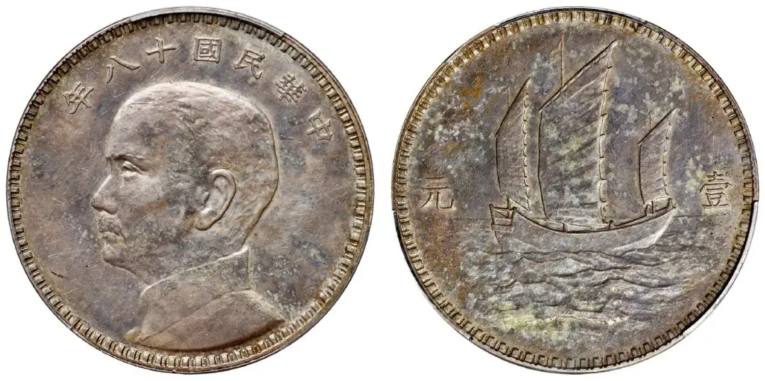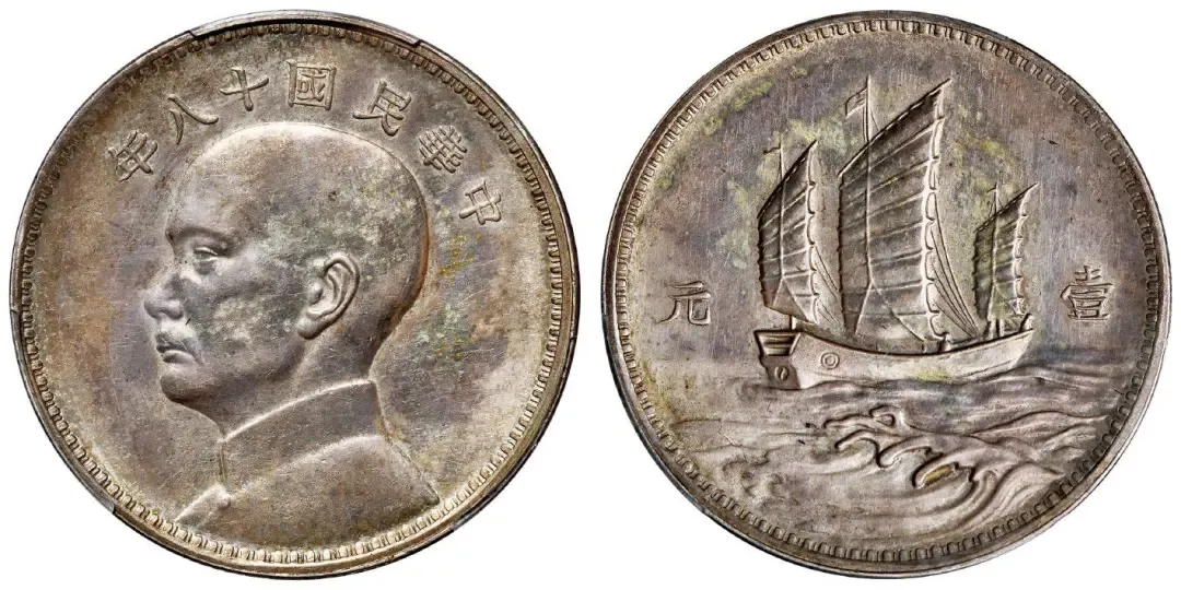 民国十八年英国版孙中山像背三帆船壹元银币样币