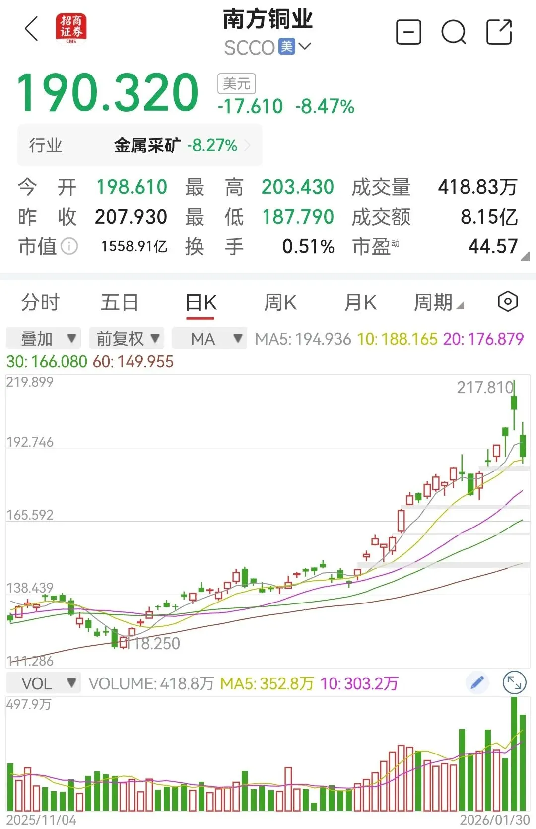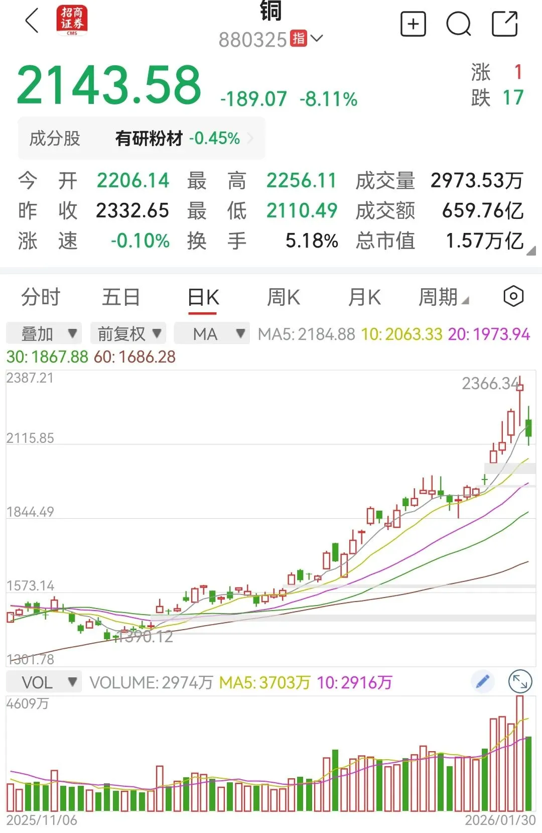 开国大帝也教导我们:铜业股钱途是光明的,但道路是曲折的。明知要调整了,当然不能立正挨打,该回避还是要回避的。但,这个“但”字很牛逼:胡汉三会回来的
