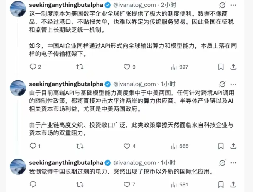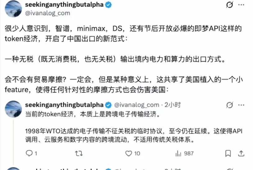 AI的核心就是算力和电力,因此当美国用户用GLM5、Mini MaX的模型的时候,本质上就是中国电力和算力出海了。