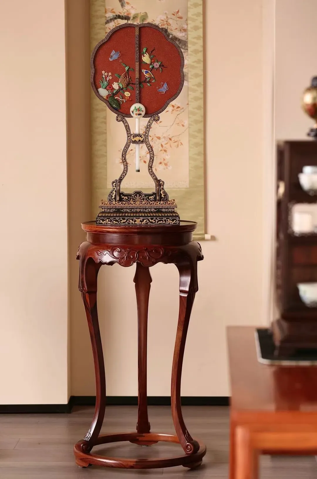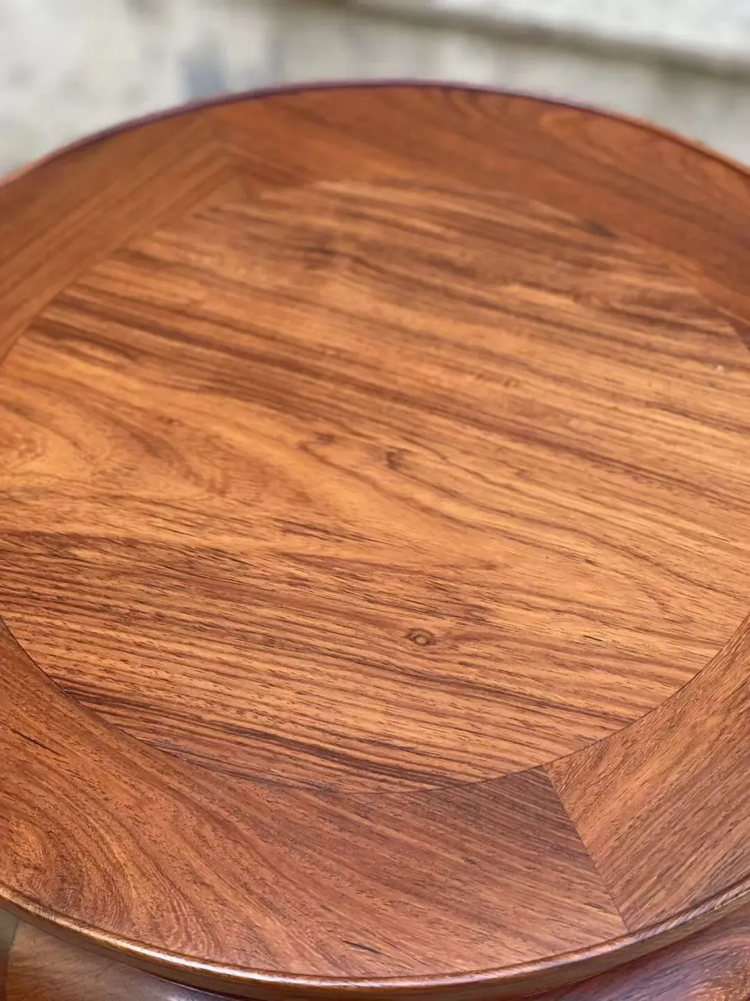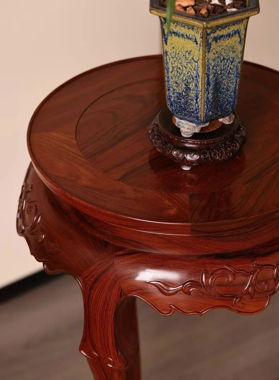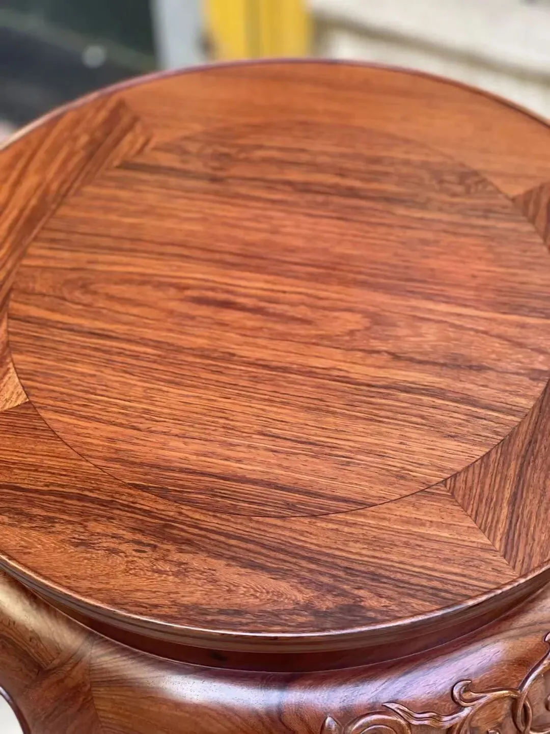 最像黄花梨的一种高端木材,却因为市场上行情不好,这种材质反而更受欢迎。它就是白酸枝材质,学名奥氏黄檀,属于国标红木的红酸枝木类,具有酸香味。白酸枝的纹理非常像黄花梨的材质,这也是在这种材质上不断加分的亮点,同时这种材质本身的油性密度都还是不错的,所以也受到很多有钱人的青睐和喜欢。而这几年大家说行情不好,消费降级,大家不怎么消费大红酸枝材质的前提下,把眼光放到了白酸枝材质身上,深受市场欢迎。一对白酸枝精品制作的三足香几,老厂精工制作,器型经典,做工精美,做得相当漂亮。这种三足香几,非常耗料,三条腿足三弯,视觉美感非常足,圆形的家具,通常都非常耗料