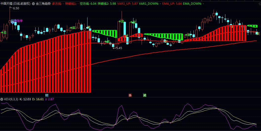 今天聊聊【金三角趋势】这个主图指标,看看它是如何通过多维度参考,帮助识别趋势方向的。