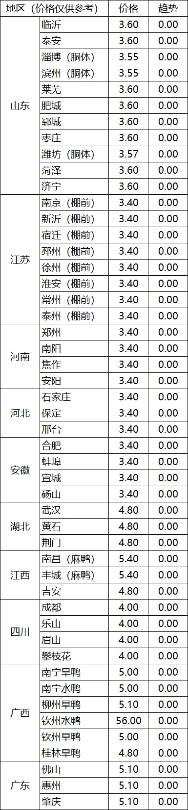 当下鲁西北地区以市场毛鸡为主的大型宰杀体系仍然处于全线停杀放年假模式,滨州地区以市场毛鸡宰杀体系为主的知名屠宰企业正月十五-十六正式开工宰杀恢复生产,当地有收购合同鸡只的屠企开始对外预报执行宰杀价格在3.65元/斤左右;鲁西南屠企自行放养风险共担合同保底鸡只初六-初七开杀试刀,对外询价预报毛鸡收购价格继续强稳在3.65元/斤,部分收购市场的屠企对外询价预报开价3.65-3.70元/斤!潍坊、胶东地区部分收购合同的屠企对外询价提前预报开价3.65-3.68元/斤,亦有自行放养合同保底鸡只的加工厂初步计划在初七-初八开刀试产提前预报在3.60-3.65元/斤;当前由于工人还未完全到岗屠企交投稀少毛鸡市场仍然处于有价无市态势!