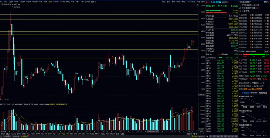 上证指数年线图,3350-《3800-4400-》5300。年线结构图表上走势相对强趋势,3800-4400为目前阶段主要运行区域。