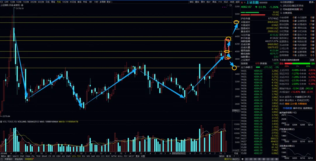 上证指数月线标注图,3580-《3830-4000-4300-4400-》4780。月结构图表上走势处于稳中加速后的震动走势区域,3830-4400之间走势相对较强,4000为近区域平衡位置。