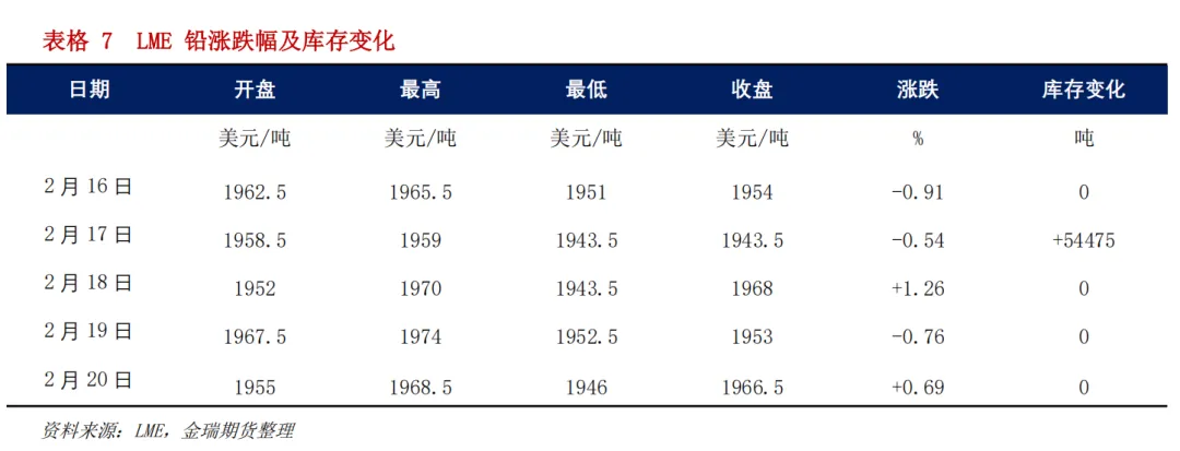 宏观方面,特朗普关税被判违宪,其随后表示额外对全球商品加征10%的关税,关税仍有扰动;美国2025年四季度GDP增速1.4%,远低于市场预期的2.5%,2025年12月核心PCE同比3%,高于市场预期2.8%,美国经济再现滞胀苗头。国内春节期间,LME铅0-3升贴水维持在-48美元/吨附近运行,LME库存再次回升至28.7万吨的高位,源自新加坡的交仓使得伦铅价格在1960美元附近偏弱震荡。节前国内社会库存回升至5.4万吨,按照往年季节性累库节奏推算,一方面,考虑到节前原生铅企因白银等副产品价格上涨,利润一度上涨超过2000元/吨,另一方面今年电动自行车国补政策退坡,且近期消费持续低迷,今年节后累库幅度或略强于季节性,预计将超过2.5万吨。此外需要注意,一是再生铅新国标将于3月1日起正式实施,关注再生铅纳入交割体系进展;二是关注下游消费复工复产时间及进度。整体来看,短期内外市场或因累库预期和消费缺乏亮点导致价格承压,向上空间和弹性均弱于其他金属,国内铅价节后或维持震荡偏弱走势,沪铅波动区间16500-17200元/吨,伦铅主要波动区间1940-2030美元/吨。