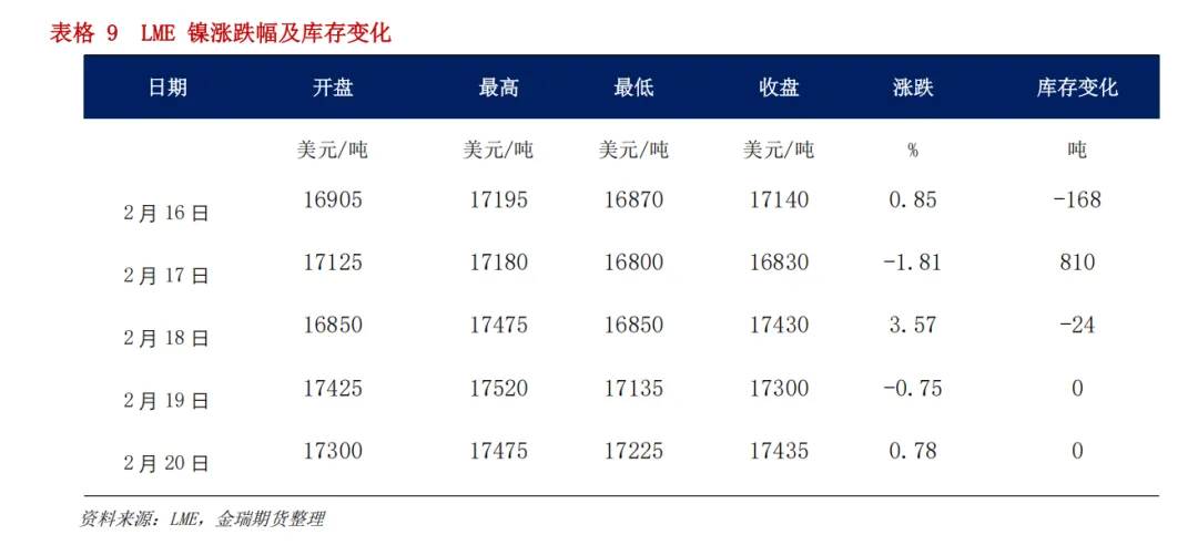 印尼莫罗瓦利镍矿中心发生山体滑坡,造成一名工人死亡。根据SHMET,2月20日印尼IMIP园区发生山体滑坡,导致一名工人遇难,并冲走了数台挖掘机、推土机和倾卸卡车。IMIP发言人在一份声明中表示,滑坡发生在青美邦所属的一处废料堆放场,多台挖掘机、推土机和倾卸卡车被卷入其中。