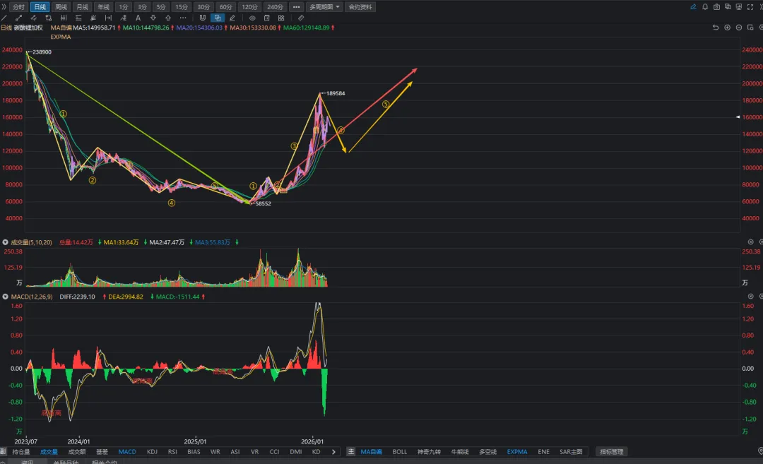 因此,从高点19万附近开始的这个5分钟级别下跌,并没有结束