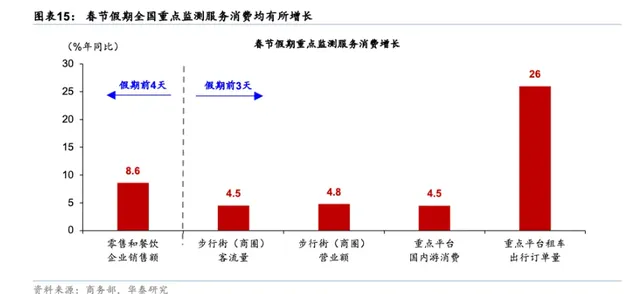 国内消费市场的强劲表现,成为支撑A股节后行情的内在底气。春节期间,消费市场“马”力全开,返乡消费与反向过年双向发力,带动旅游、餐饮、家电、AI数码等多个领域持续升温。县城酒店预订量翻倍、年夜饭一桌难求,AI手表、智能家电等产品热销,多地景区人气爆棚,这些亮眼的消费数据不仅彰显了国内消费市场的澎湃活力,也为A股消费板块的节后表现提供了坚实支撑,成为红包行情的重要潜在发力点。