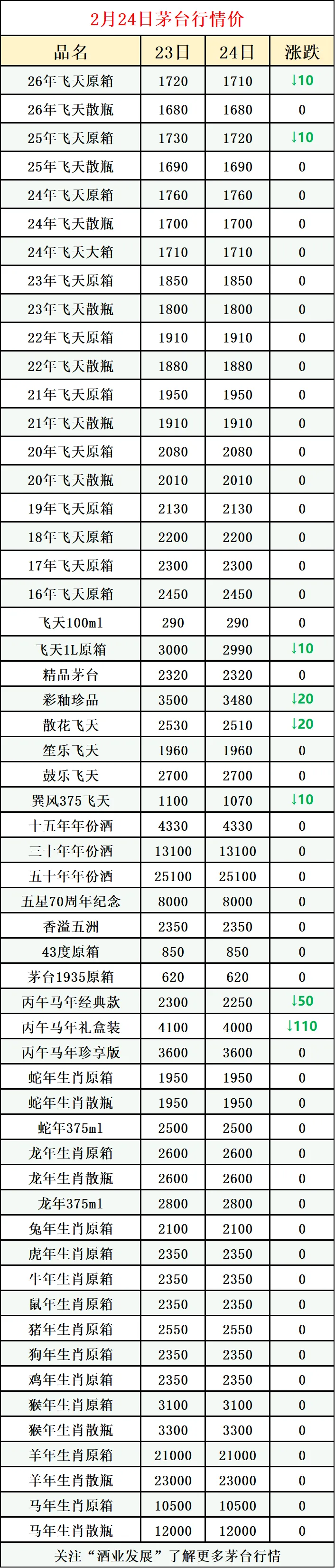 2 月 24 日茅台全线下跌!行情再探底.