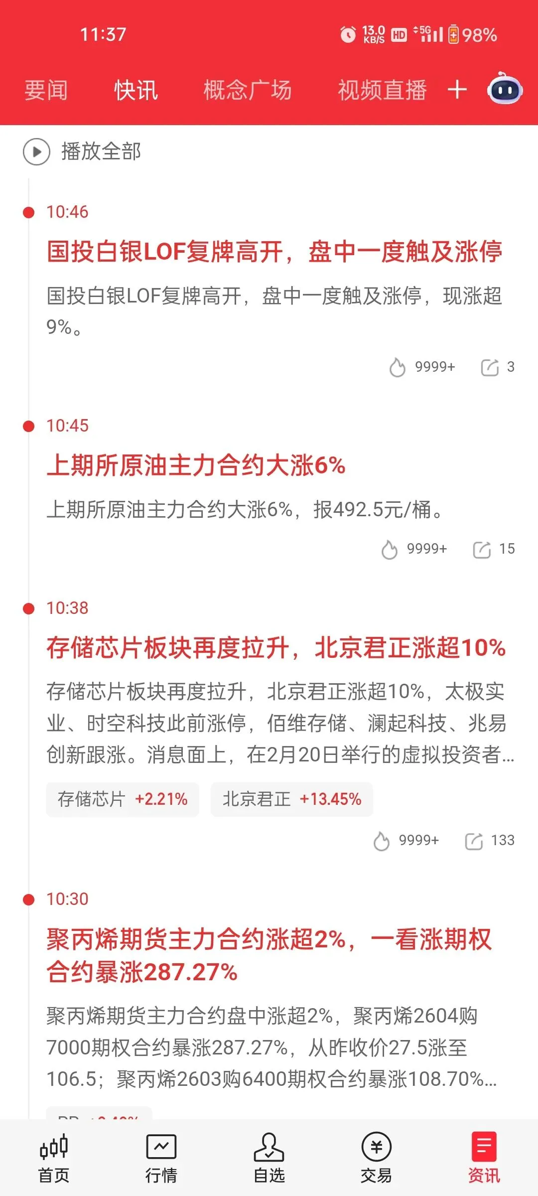 下面是今天的操作记录截图如下,要快进快出 、不能太贪婪,保持小亏大赚就行。1/2仓防守套利为主,表现好的都是涨价消息刺激的原油、化工、有色、存储芯片,难以持续!年前表现强势的AI影视概念掌阅、大位、横店、博纳、直接秒按。目前唯一的4板是豫能,受收购算力消息刺激连续一字涨停,从近期资金态度看明天5板将面临情绪高度压制,其他算力股都表现差强人意,估计也难有持续性。