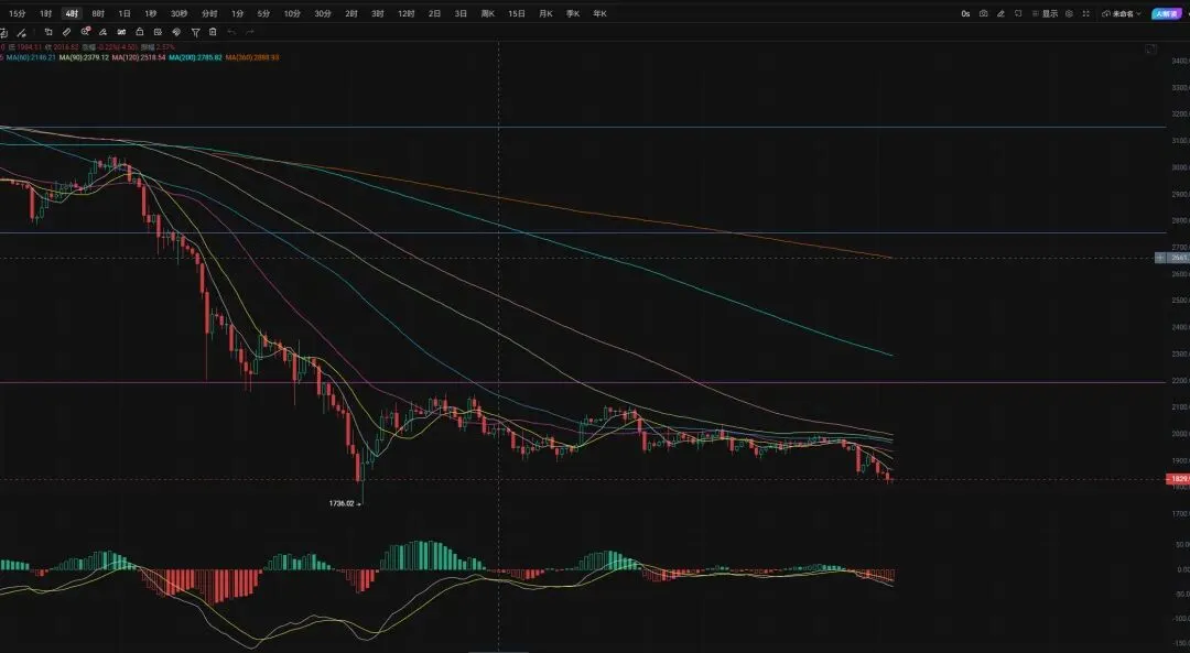 以太坊4小时周期来看,当前盘面整体维持弱势震荡格局,上方1900至2000区间构成密集强压区域,价格反弹至此区间承压明显,多头难以形成有效反攻,日内走势持续偏弱运行,短线操作思路以反弹高空为核心,优先等待价格反抽承压后顺势布局空单,当前行情处于震荡选择方向阶段,需重点关注震荡区间上下沿的突破情况,以破位方向作为后续趋势延续的关键信号,严格把控仓位与止损,顺应短线偏空节奏执行交易。
