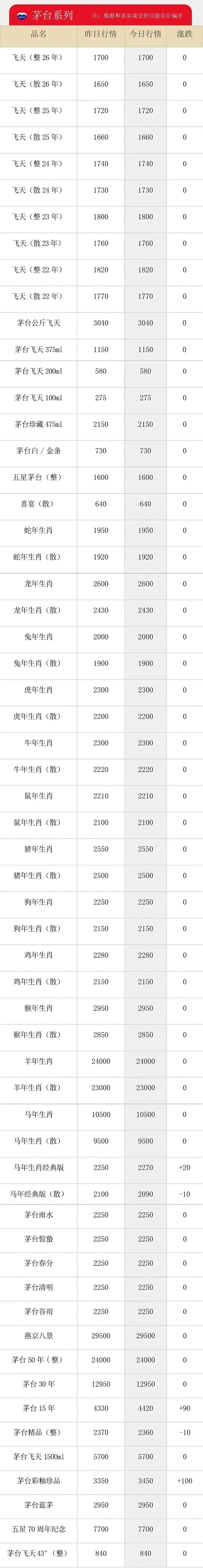 (2)《茅粉行情》提供价格均为商品批发参考价,仅供酒商参考。与市场零售价存在一定价差,与批发成交价也存在一定价差,望请周知。