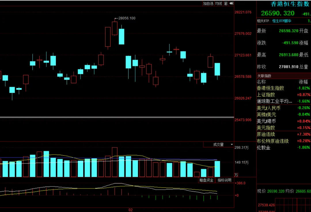 港股今天则出现一个向下转折的走势,昨天的大涨成了转折高点。