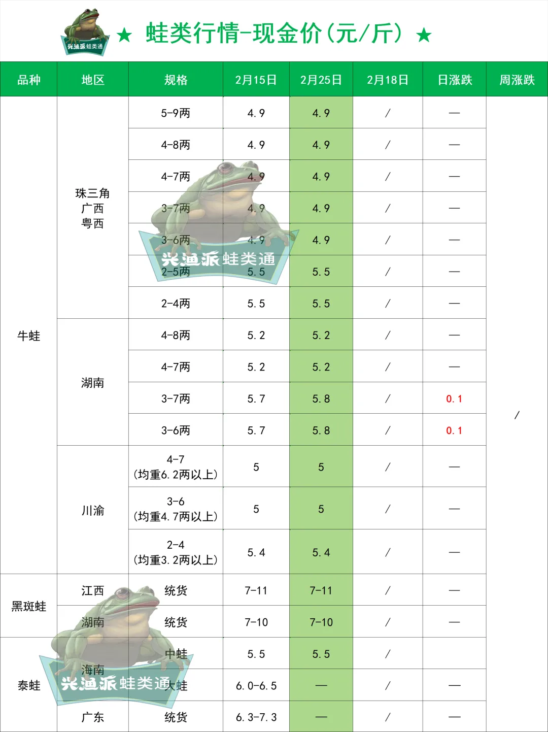 2月25日全国牛蛙、黑斑蛙、泰蛙最新行情!
