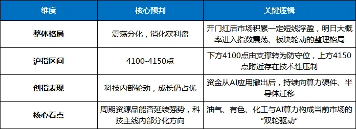明日若市场出现震荡,本质是对今日过快上涨的技术性消化,而非趋势逆转。对于已经跟上资金节奏、握有算力硬件与周期龙头双主线筹码的投资者,应保持定力,利用轮动优化持仓;对于仍在犹豫的投资者,主线已清晰浮现,不必追高,但务必沿主线逢低布局,以免在后续的春季躁动中陷入被动。