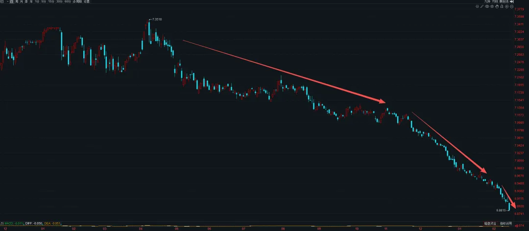 今年的行情还有另外一个支撑因素,就是人民币最近升值加快,今天美元兑人民币已经触及6.88关口。