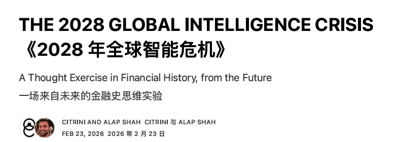 主要是昨天一篇畅享2028年AI泡沫危机的研报直接吓坏了欧美股市,这个研报畅享了2年后,AI开始大规模替代人类,并造成严重的失业和通货紧缩。