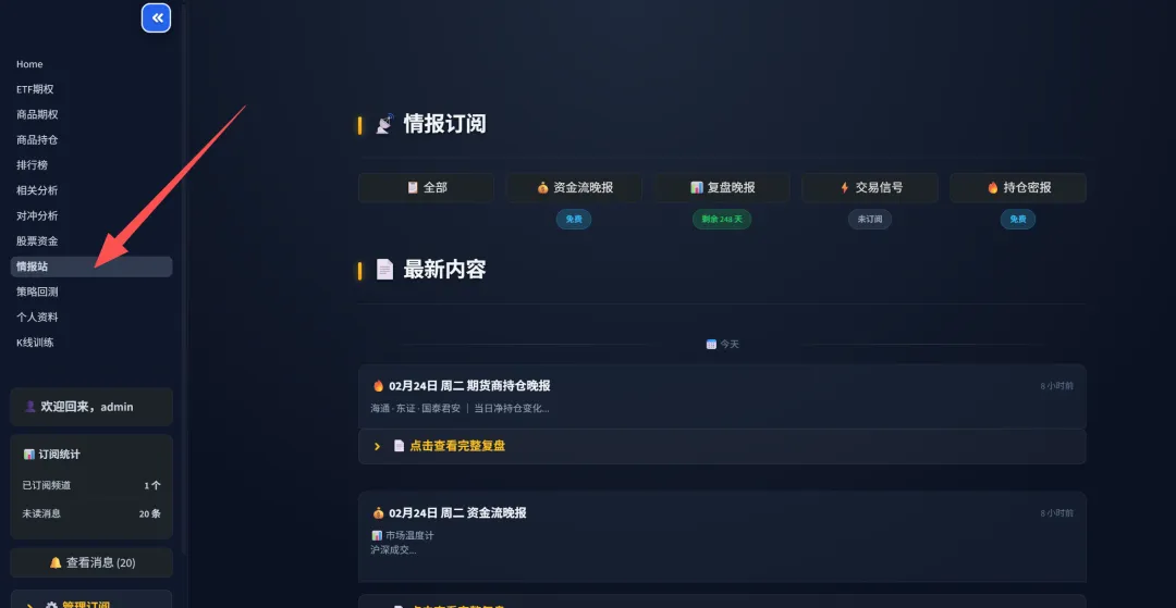 每天晚上6点半定时出持仓分析报告,在网站的情报站页面里。