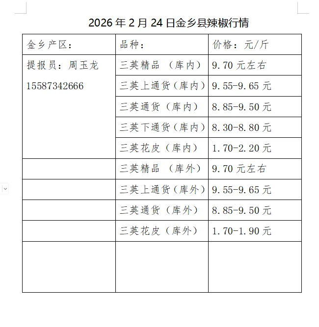 >2026年2月24日金乡县辣椒行情