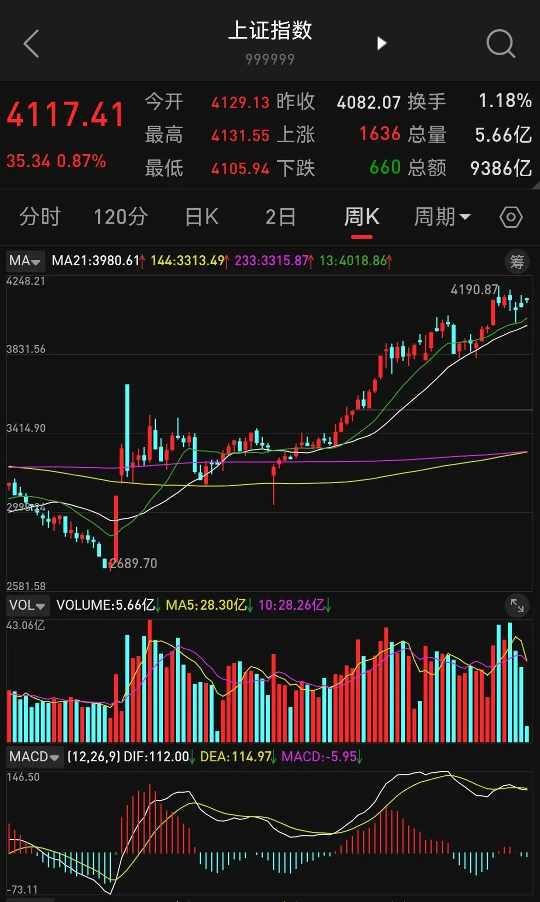 上证指数站上21日均线第1个交易日,从周线来看,目前行情属于震荡蓄势缠绕。