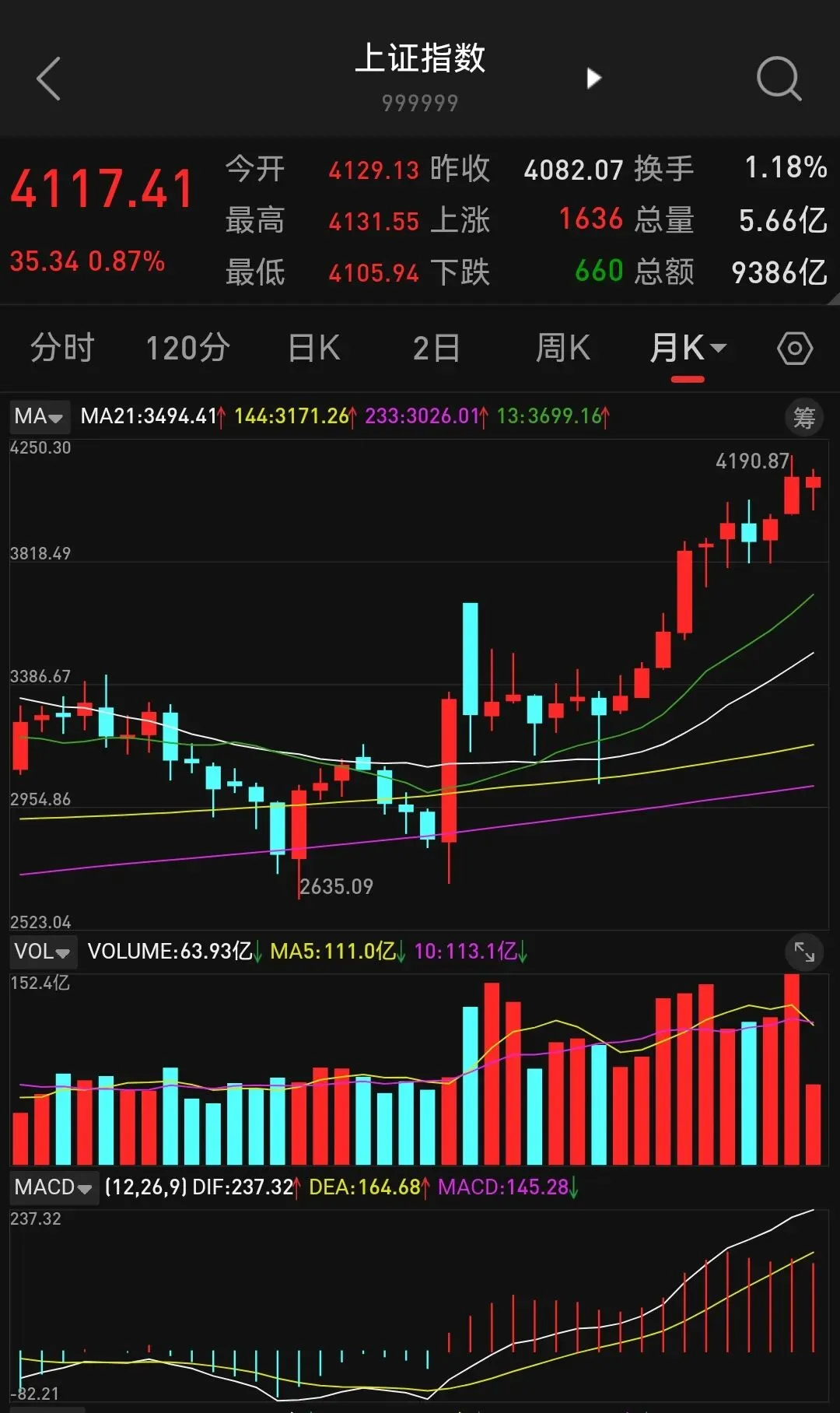 但从月线来看,趋势是明朗的,之前6连阳后接1阴换挡,目前是3连阳。
