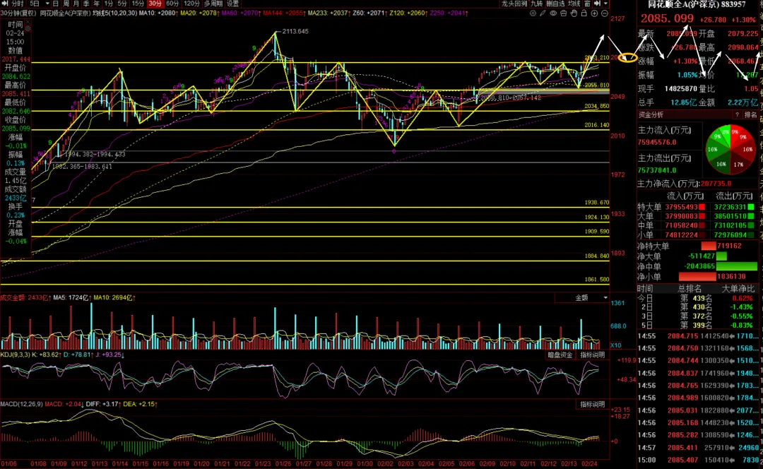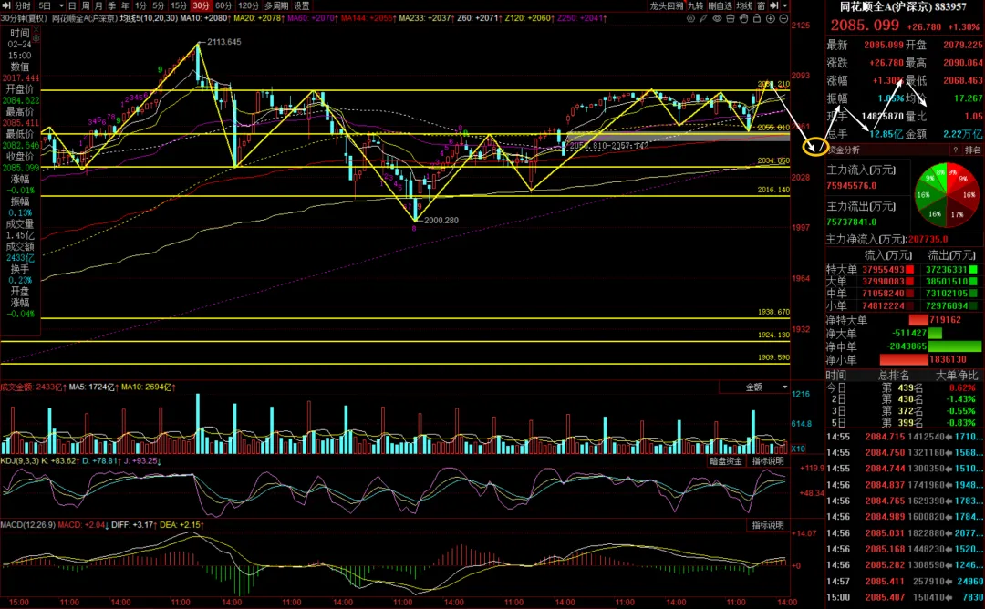 (1)同花顺全A 30分钟放量进攻,等待30分钟调整企稳低吸。